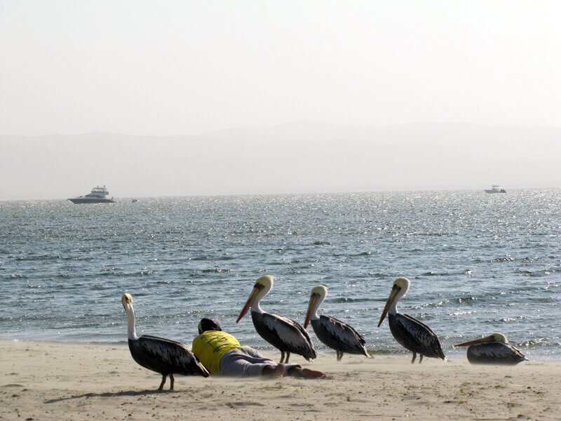 En el muelle y la arena de la playa de Paracas, desde donde salen las lanchas para visitar Islas Ballestas, se encuentran decenas de pelícanos gigantes, acompañados de algunos autóctonos que ofrecen comida para alimentarlos a cambio de alguna moneda. Sin duda una experiencia emocionante y una buena foto para el recuerdo.